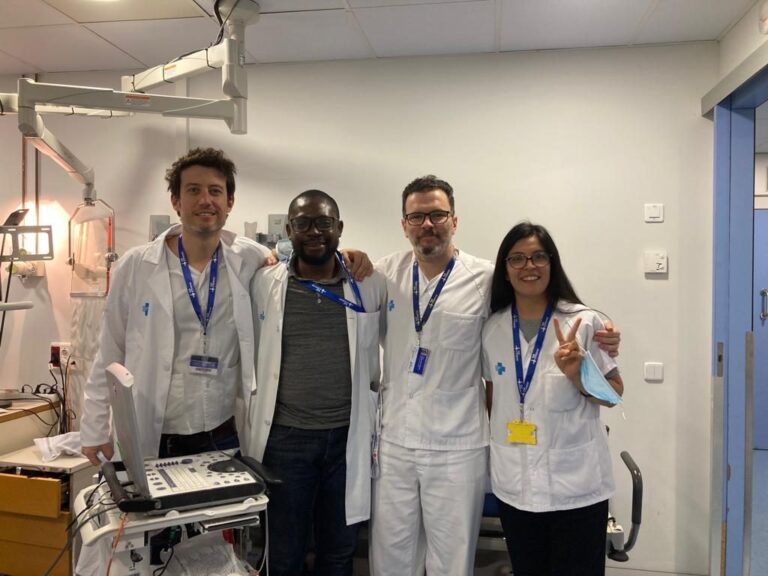 Continuando con nuestro compromiso de formación a los profesionales sanitarios de Camerún, este mes de febrero hemos tenido en España, en el hospital Vall d’Hebron de Barcelona, a Earnest Nshukwi,